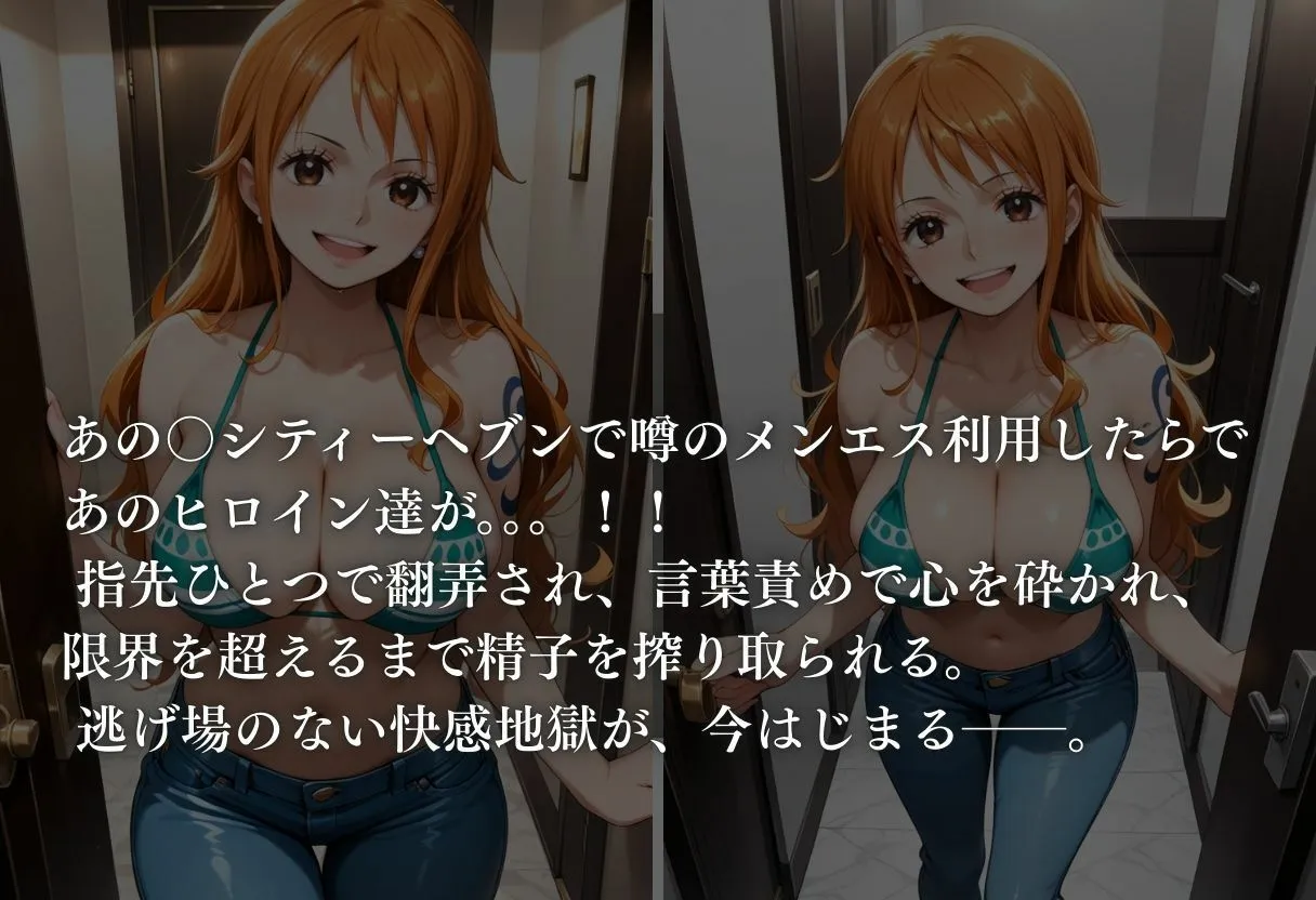【ストーリー】してティーヘブンで噂のメンズエステを呼んだら。。。あの人気アニメのヒロインが!!今回はなんとあの航海士ナミ!!ドSなナミに癒される最高のひと時を楽しめる。清楚なヒロインがまさかのプレイを!!【登場人物】ナミ【シーン】1フェラ2足コキ3騎乗位4セクシー下着5ブラ外し6脱ぎ7M字8手マン9立ちバック10アへ顔11正常位12潮吹き※この作品はAIを利用して作成したものです。※StableDiffusionを使用して生成しております※技術的な制約やAIの学習データによって、細部に破綻や不自然さが含まれる場合があります。購入前に、そのことを理解し、同意した上で購入を検討していただくことをお願いいたします。※購入後の取り扱いに不備があった場合こちらは一切責任を負いません。※商用目的での利用・第三者への譲渡・転載等が発見された際には法的処置をとらせていただき、損害賠償請求を致します。