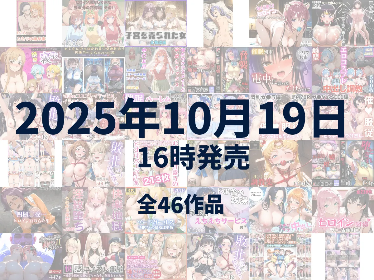 サンプル DMMで購入 基本情報 価格: 1100円 発売日: 2025年06月17日 サークル:触手堂総本山 作品形式:CG 原作: セーラームーン ジャンル: 拘束 触手 異物挿入 巨乳 野外・露出 中出し フェラ ぶっかけ パイズリ 異種姦 男性向け 成人向け 作品説明 八人の... -